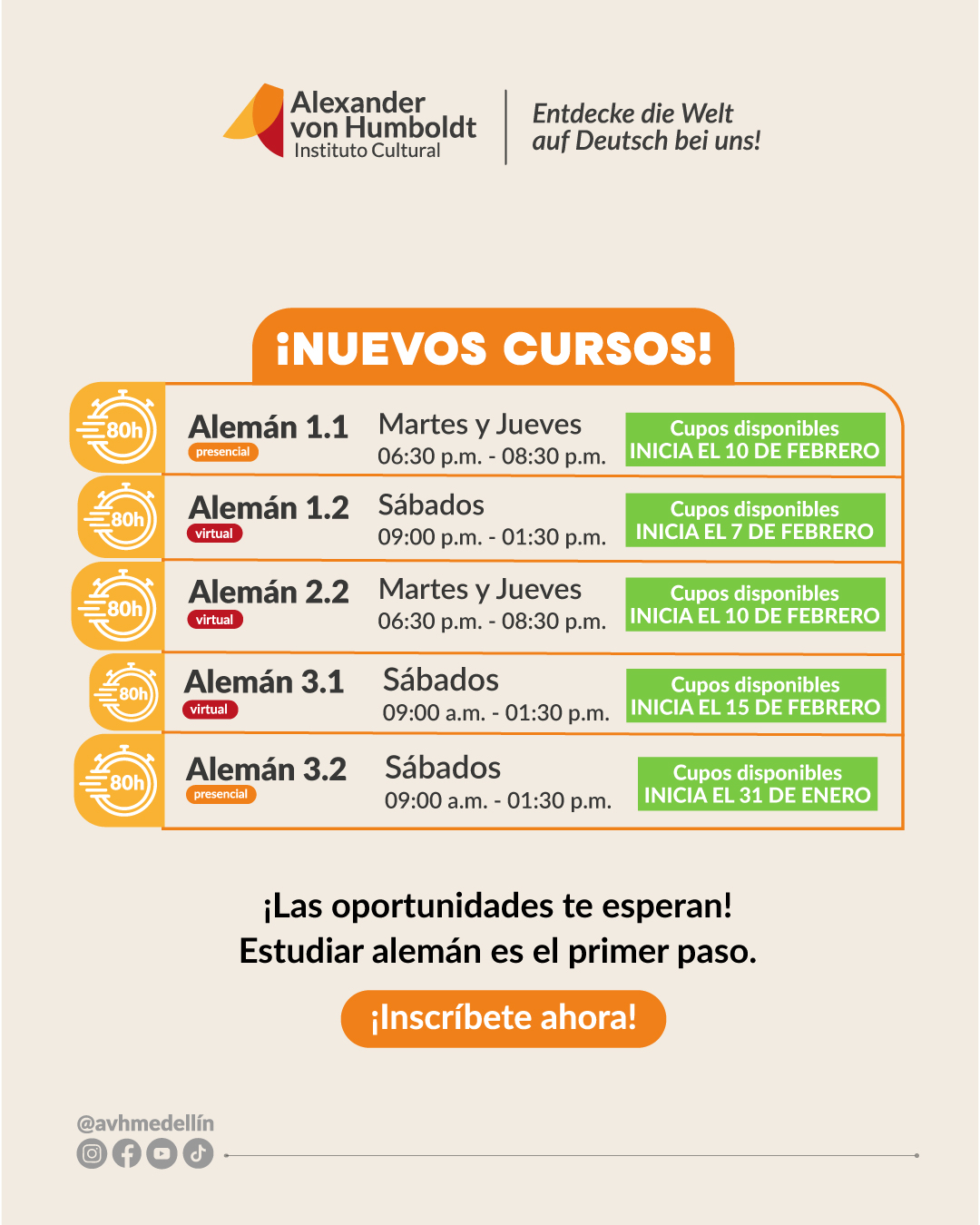 Encuentra toda la información sobre los diferentes cursos de alemán e información sobre nuestras modalidades.