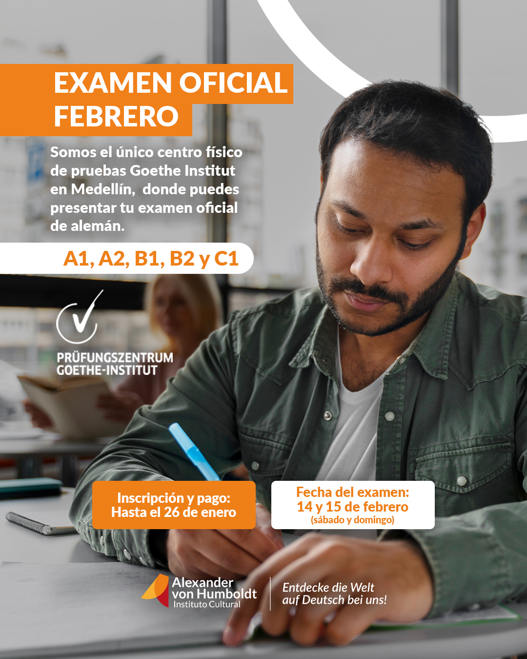 Somos una institución cultural sin ánimo de lucro ubicada en la ciudad de Medellín, Colombia. Promovemos el aprendizaje del alemán a través de una amplia oferta de cursos, actividades extracurriculares y exámenes oficiales del Goethe Institut.